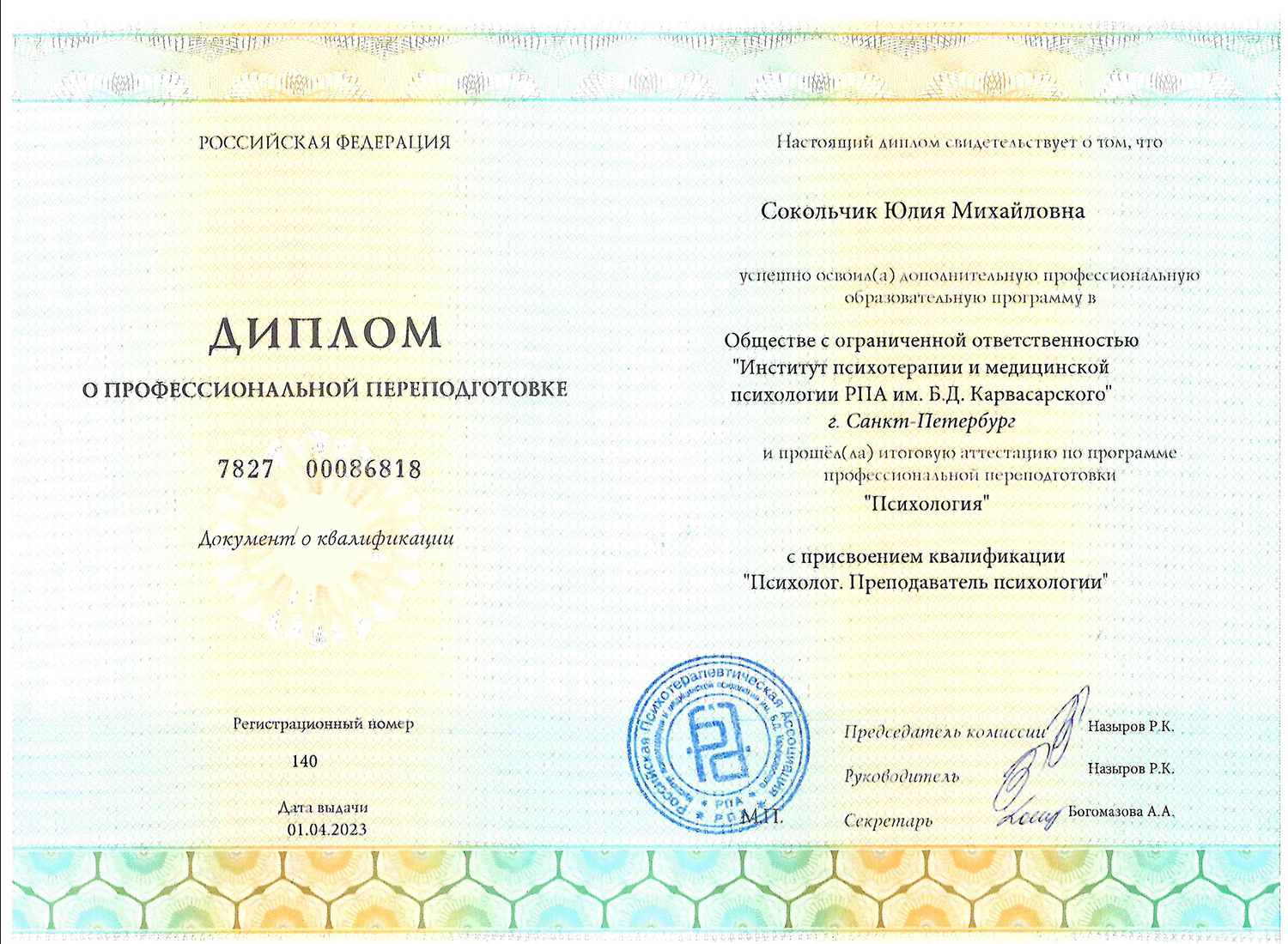 Диплом о профессиональной переподготовке