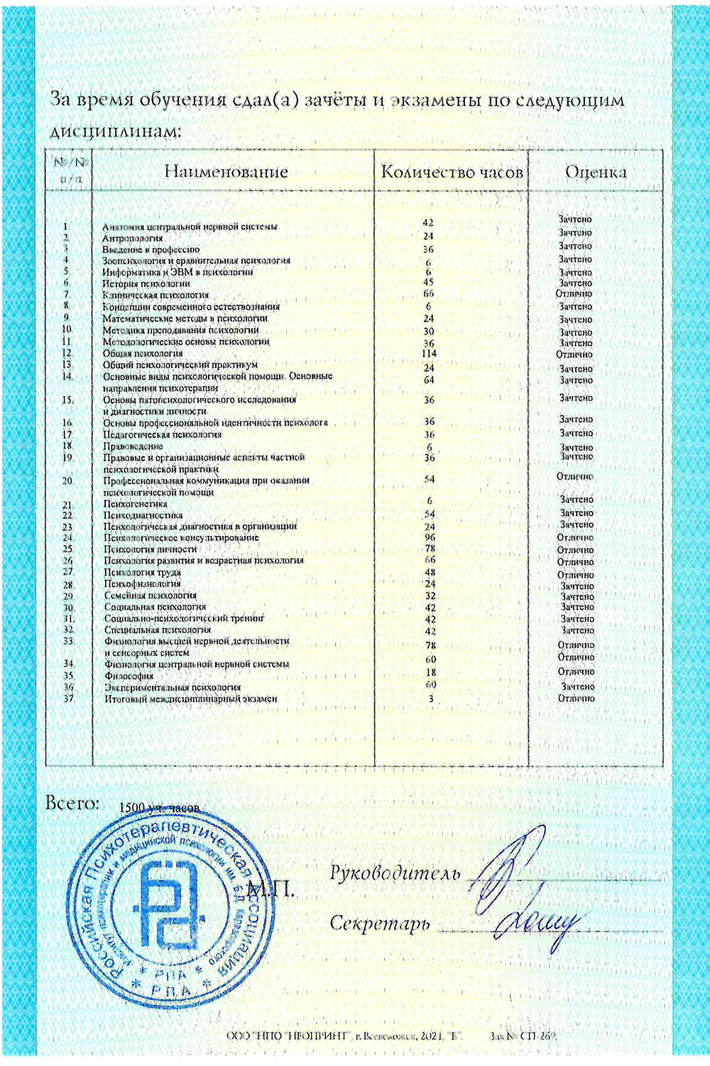 Диплом о профессиональной переподготовке